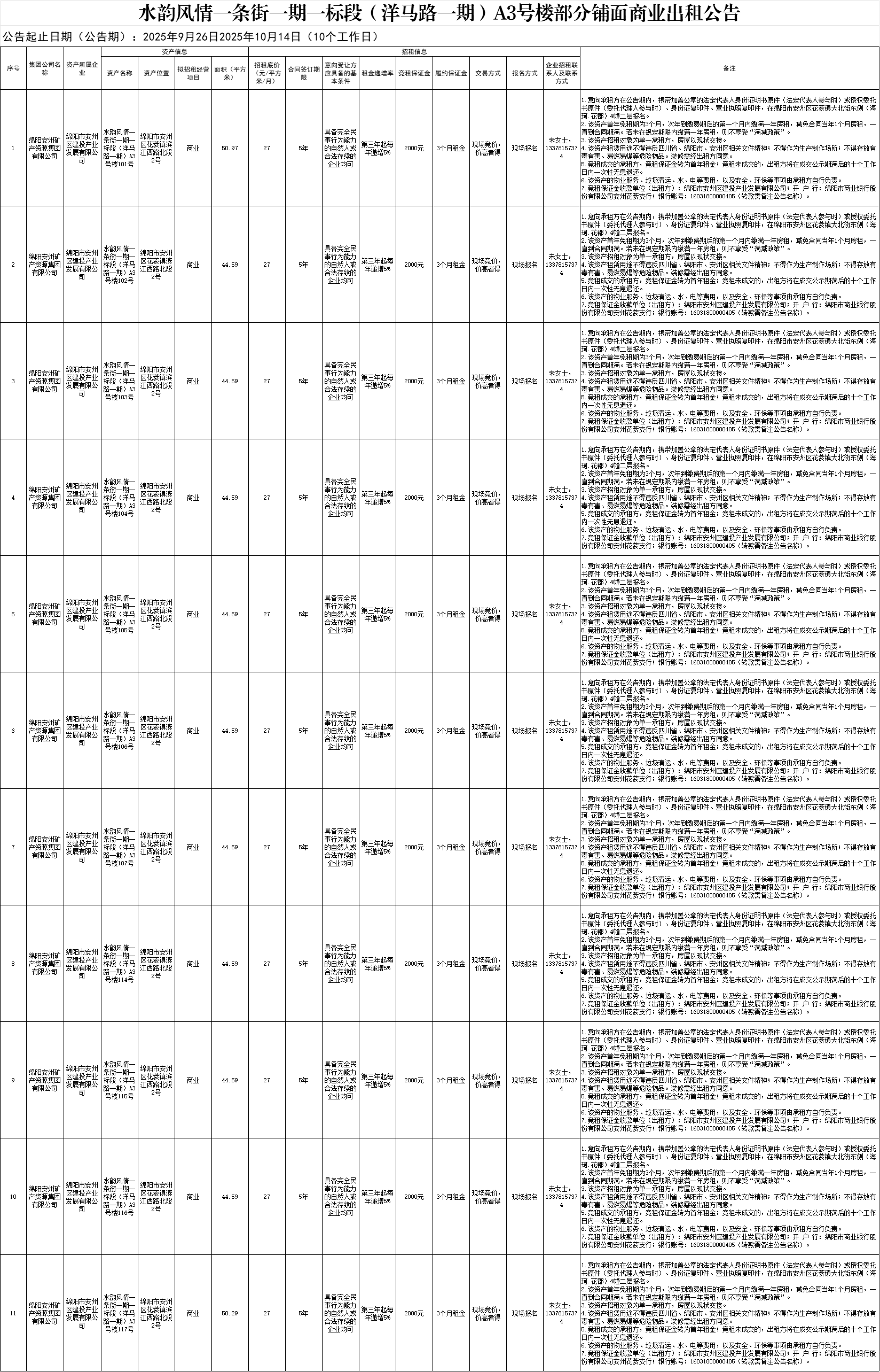 水韻風(fēng)情一條街一期一標(biāo)段(洋馬路一期)A3號(hào)樓部分鋪面商業(yè)出租公告
